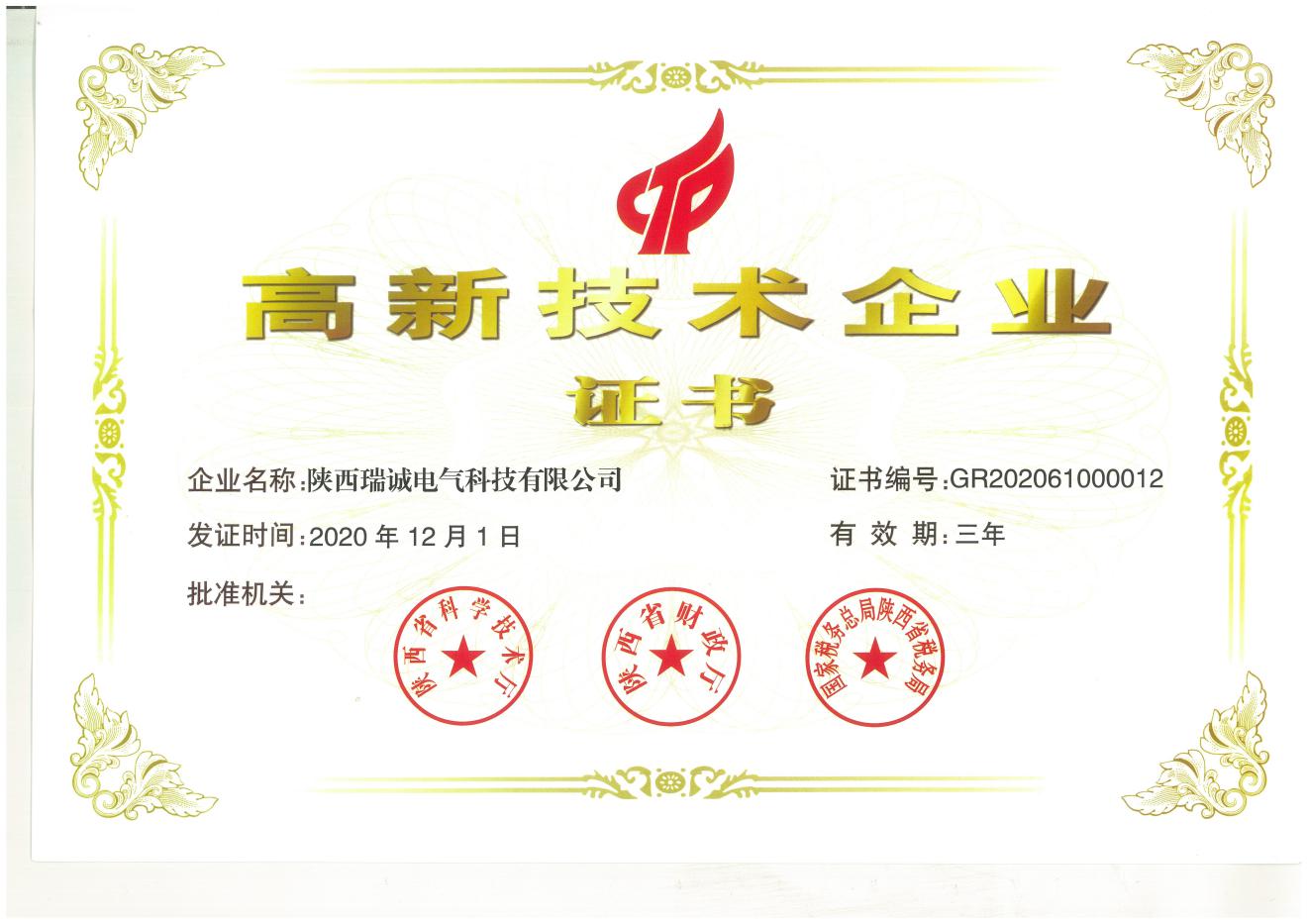 2021年是新的一(yī)年,陝西瑞誠電(dian)氣科技有限公(gōng)司也踏上了新(xīn)的征程。在新年(nian)伊始,瑞誠電氣(qì)喜獲佳音--根據(jù)..《高🈚新技術企業(yè)認定管理辦法(fa)》和《高新技術企(qi)業認定管🔆理工(gōng)作指引》的❓相關(guān)規定,憑借🐆專業(ye)的研發隊伍、雄(xióng)厚的技術實力(lì)、持續的創新能(neng)力🐅、科學的企業(ye)管理,陝西瑞誠(chéng)電氣科技有限(xian)公司順利認定(dìng)為⛹🏻♀️...高新技術企(qǐ)業💜。近日,公司也(ye)已收到由陝西(xi)省科學技術廳(ting)、陝🐇西省财政廳(tīng)、..稅務總局陝🆚西(xi)省稅務局聯合(hé)頒發的“高新技(ji)術🌈企業”認定證(zhèng)書,由此正式邁(mài)入..高新技術企(qǐ)業行列。